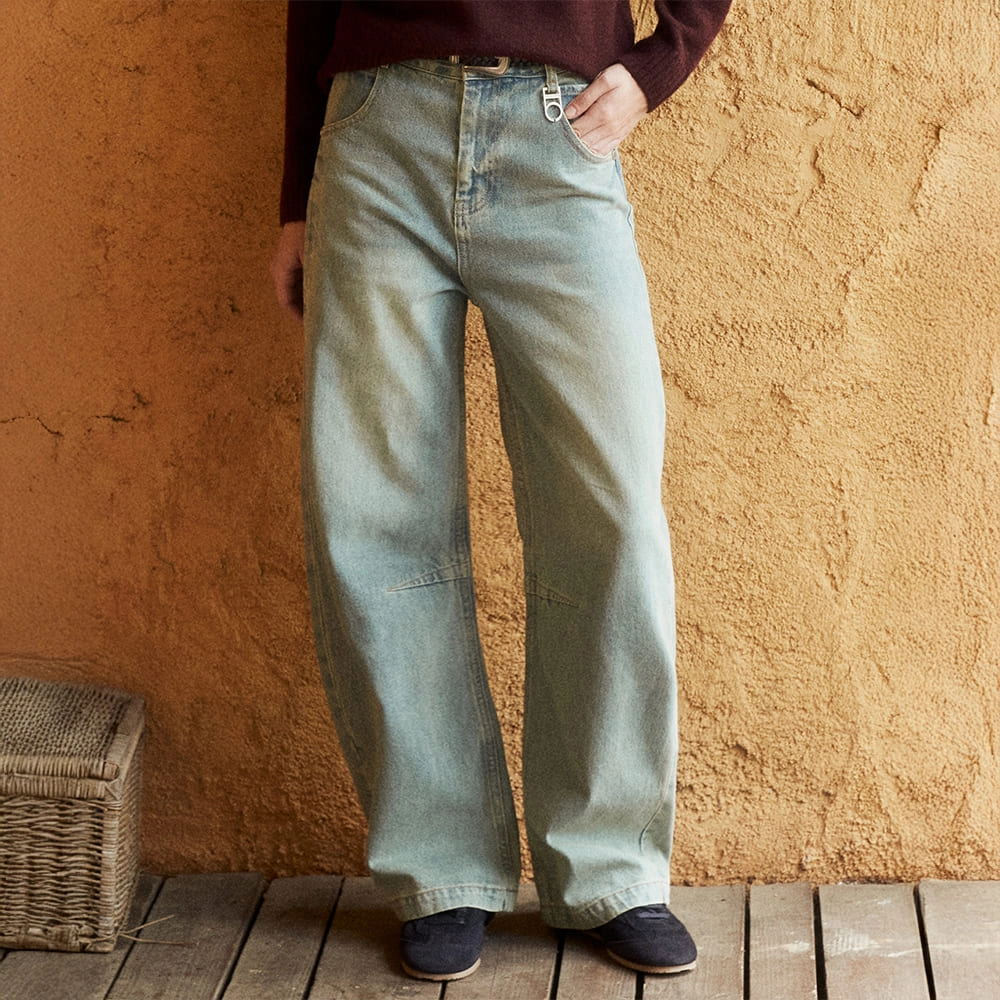 벨티드 와이드커브 데님 팬츠(아이보리)