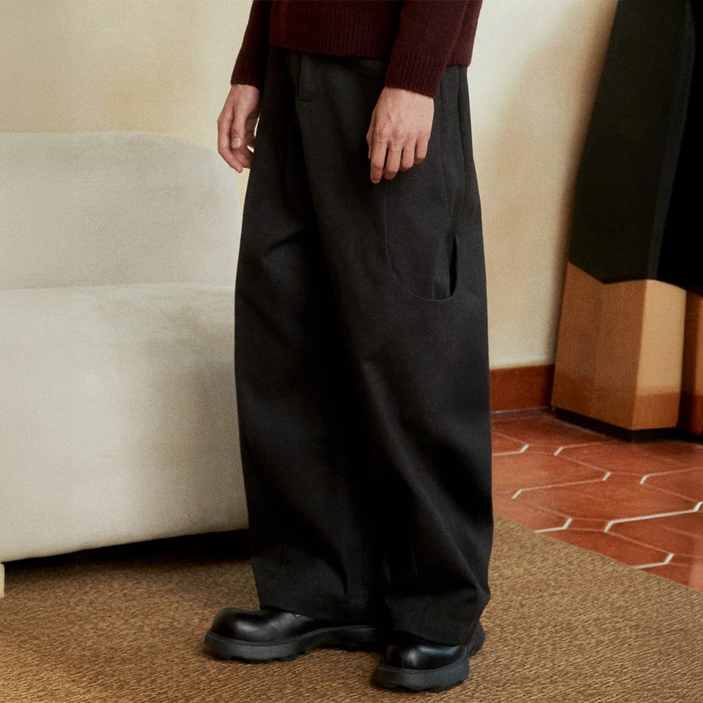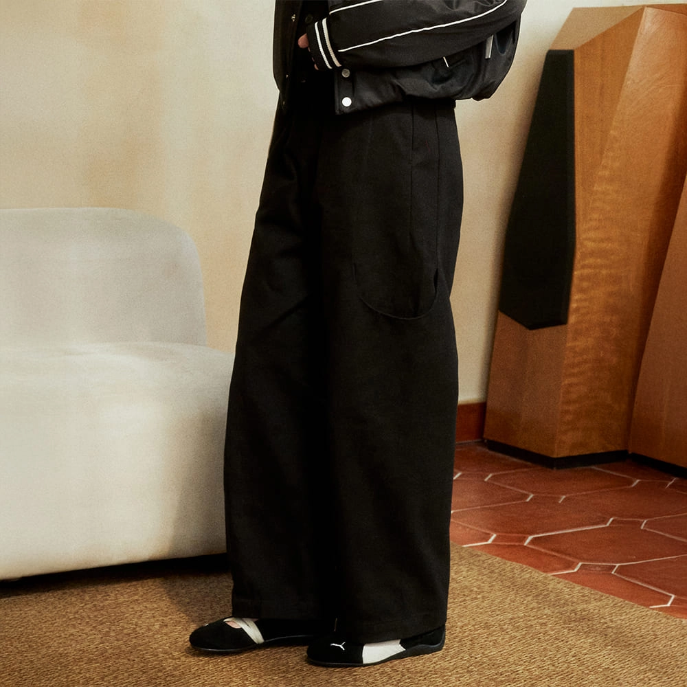 Side-Snap Balloon Curved Pants (BLACK)