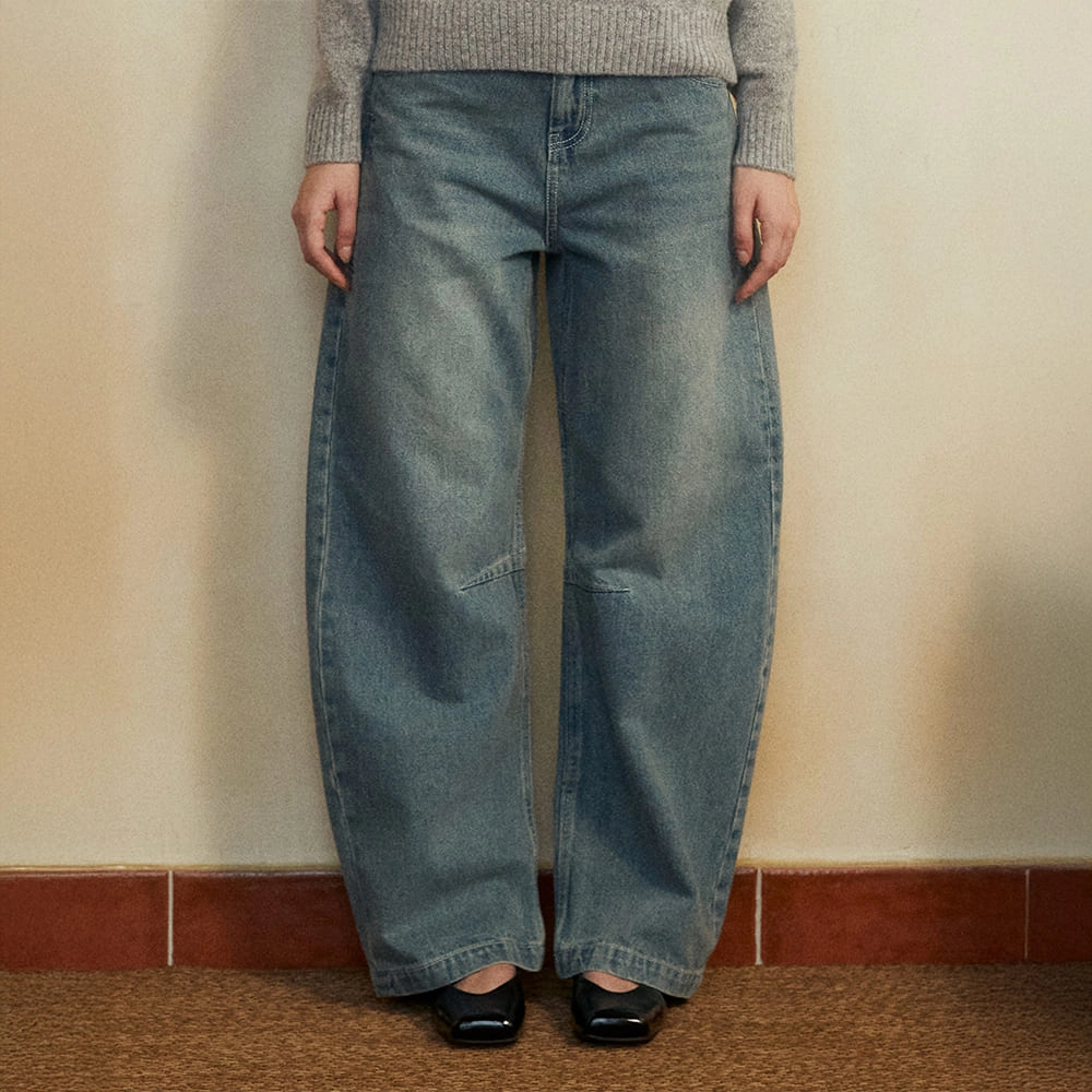 벨티드 와이드커브 데님 팬츠(인디고)