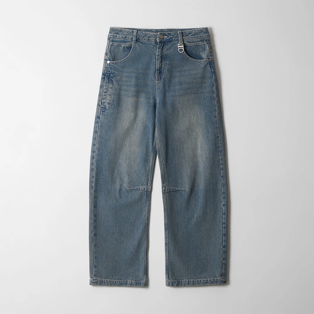 Tool Pocket Wide-Curved Denim Pants (BLUE)