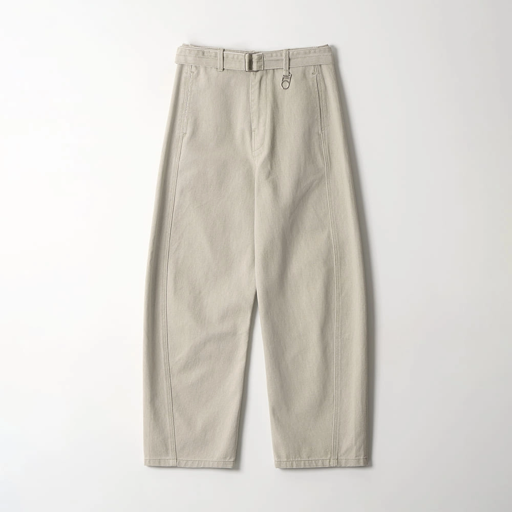 Belted Wide-Curved Denim Pants (BEIGE)