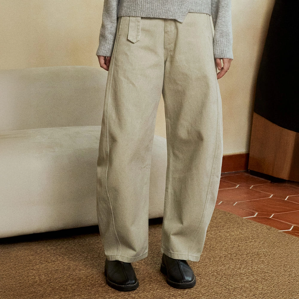 Side-Snap Balloon Curved Pants (BEIGE)