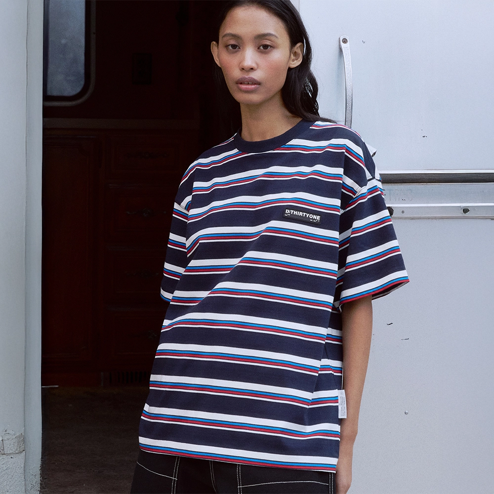 (WOMAN) Multi Stripe T-Shirt (Navy)