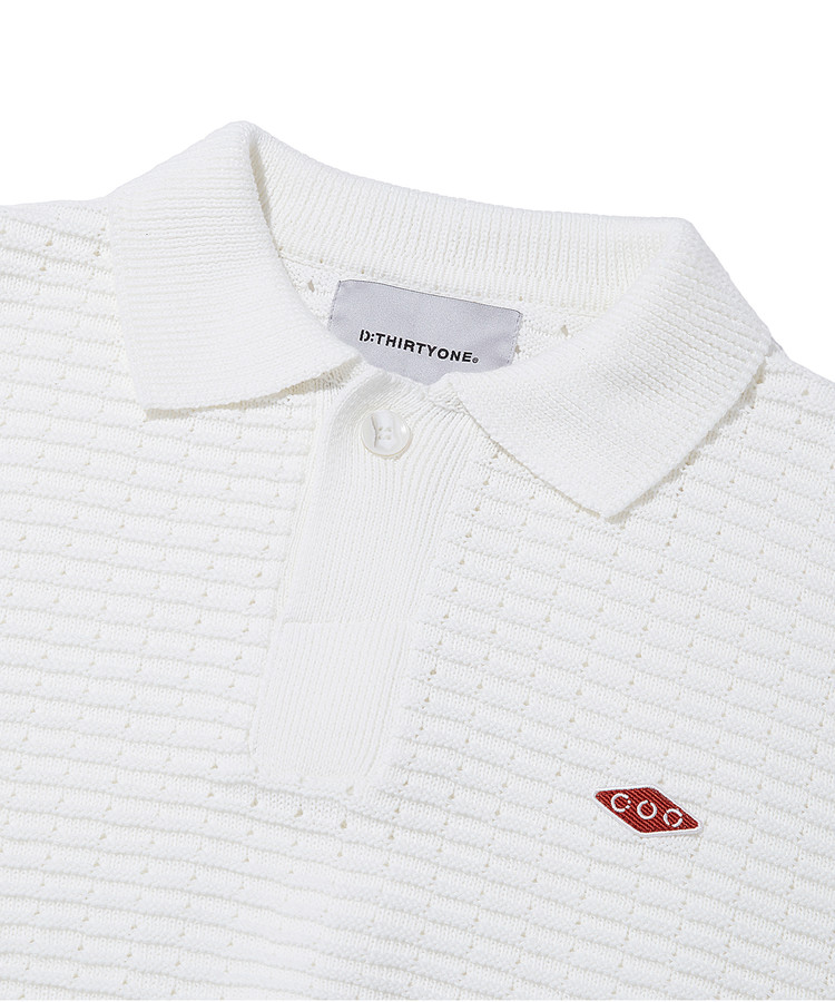 - 여유로운 실루엣과 시원한 원단이 특징인 리조트 웨어에서 영감을 받은 D:THIRTYONE(디써티원)의 펀칭 카라 니트입니다.