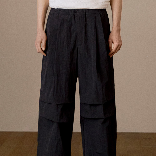 나일론 투턱 와이드 파라슈트 팬츠 (카키그레이)