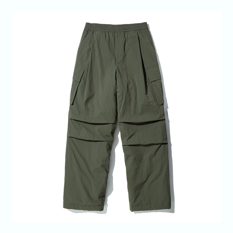 Padded Nylon Parachute Cargo Pants_Olive Khaki