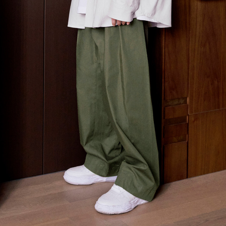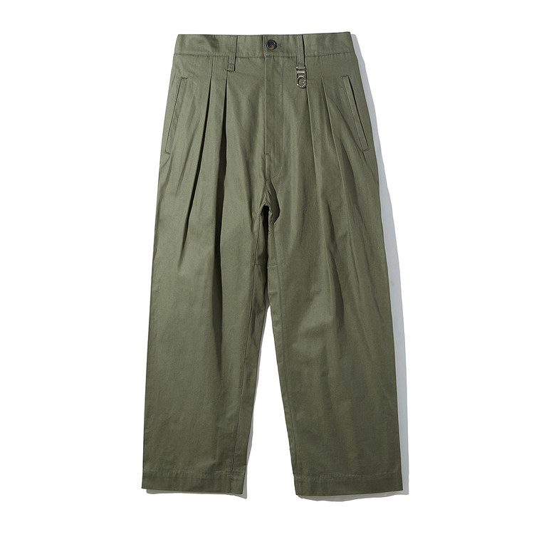 Cotton Chino Pleated Pants (OLIVE)SALE