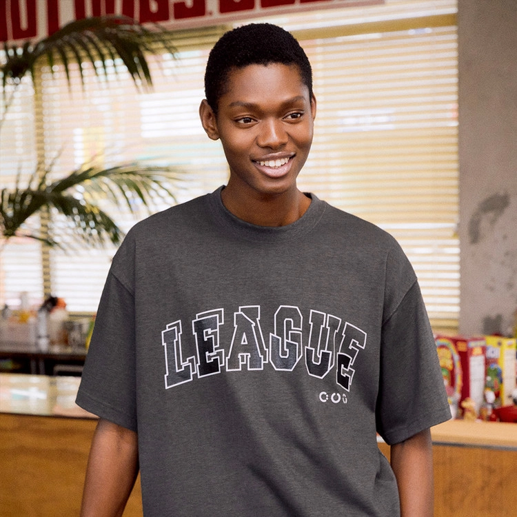 League Overlay Print T-shirt (PIGMENT CHARCOAL)SALE