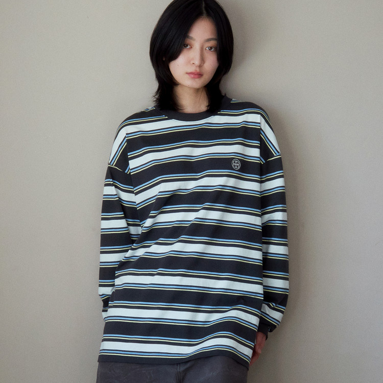 멀티 스트라이프 롱슬리브 티셔츠(차콜&아이보리)SALE