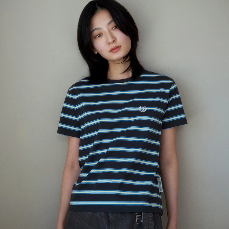 멀티 스트라이프 반소매 티셔츠(차콜)SALE