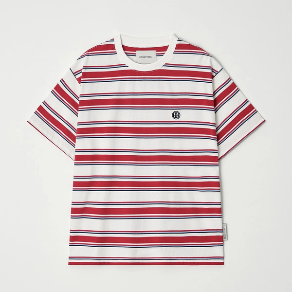 감각적인 컬러 배색의 멀티 스트라이프 패턴이 돋보이는 반팔 티셔츠입니다.