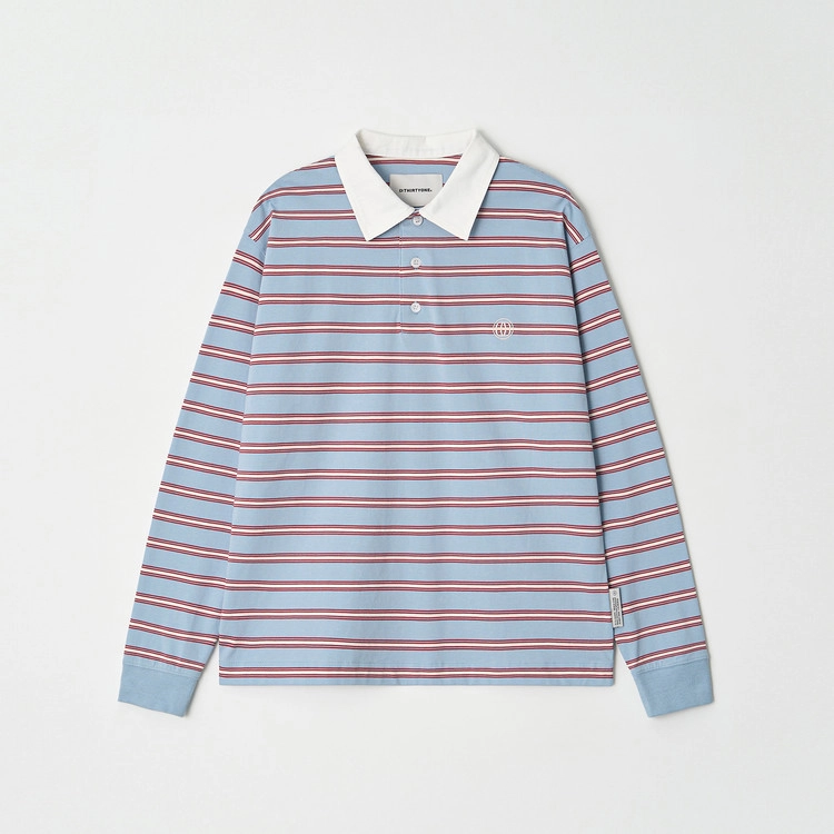 핀스트라이프 롱슬리브 카라 티셔츠(블루그레이)SALE